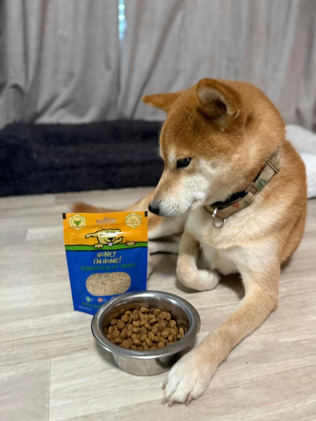 The honey-coated water buffalo tripe adds just enough flavor to make her excited, while still allowing her complete and balanced base to do its job. No picking around the bowl, no leftovers — just a clean dish and a happy pup.